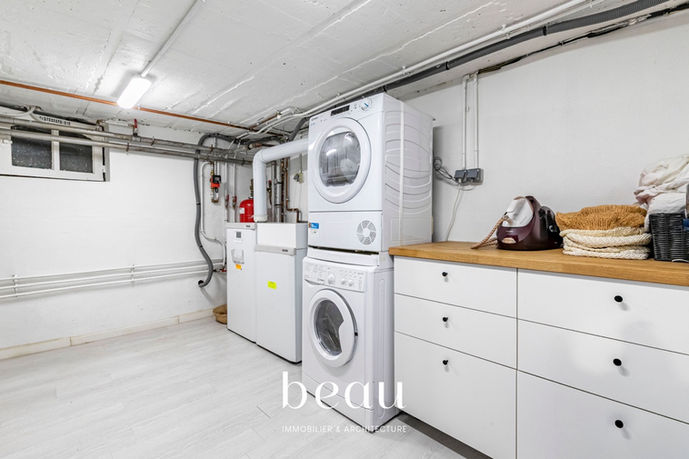 - au sous-sol: un espace buanderie/chaufferie, un espace pouvant faire office de chambre d'appoint accessible également depuis l'extérieur et divers espaces de rangements.